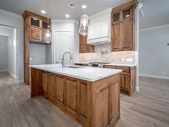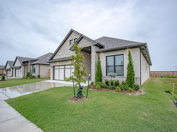 Welcome to this BRAND NEW ADDITION in SOKC. Be a part of the maintenance free community behind the GATES with a LOCK and LEAVE lifestyle. Great curb appeal with STUCCO fronts and MARVIN WINDOWS. The interior has a WOOD LOOK TILE through the main areas with an OPEN CONCEPT kitchen. The living area has custom FIREPLACE with wood surround to the ceiling. Kitchen features: BOSCH APPLIANCES, QUARTZ tops, cabinets to ceiling with lighting in the uppers, GAS RANGE, pot filler faucet, and HUGE walk-in PANTRY. The primary sits at the back and is large with a beautiful ensuite that includes: WALKT-THROUGH to laundry area with SINK, a DOUBLE VANITY, under cabinet floor lighting, SHOWER WITH SEATING, a large walk-in closet, and deep JETTED TUB. The back yard has a large PATIO that wraps around with plenty of space. UPGRADES: SPRINKLER SYSTEM, Smart Home Security, FENCE, blinds, 8' interior doors, STORM SHELTER and a TANKLESS water tank. HOA covers mowing and will have a COMMUNITY CLUBHOUSE.