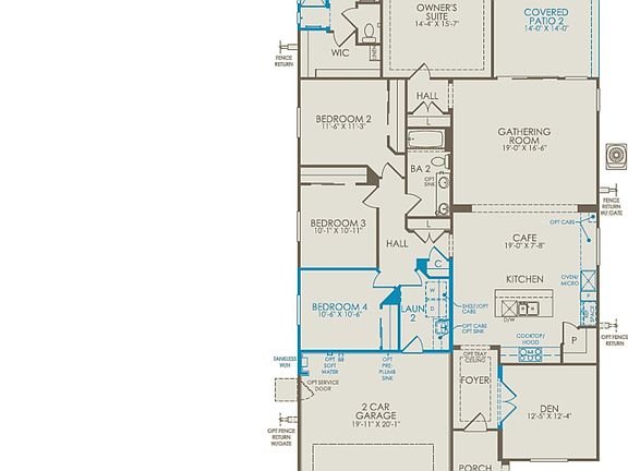The Cantania floorplan boasts a Chef Kitchen with a gas appliance package, Estrella Maple Dusk cabinets with hardware, and Snowridge granite countertops in the kitchen and owner's bath. Additional features include raised cabinets in baths 2 and 3, a smart home system with a Ring doorbell, and a Honeywell thermostat.