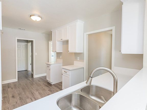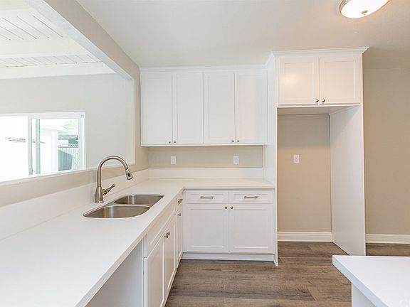 Lovely, remodeled single story home. This home features approximately 1312 sf of living space. Three bedrooms, one full bathroom. Updates include fresh paint and carpet throughout, as well as new light fixtures and some new plumbing throughout. The bathroom features a new vanity and counter and wood-like vinyl flooring. The kitchen features quartz counter tops, and a voucher for new stove, dishwasher and microwaveappliances. The two car garage has a new garage door and motor. There is also newer central heating and air conditioning. Large low maintenance backyard patio. Great area...Walk to Schools.