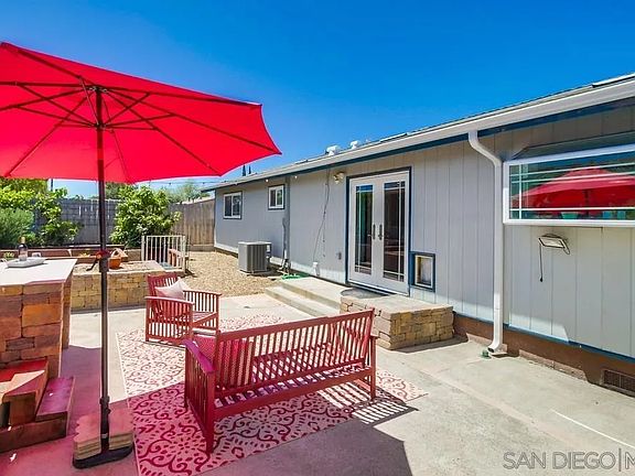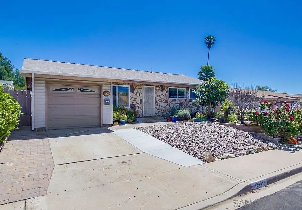 Welcome home to this Poway Golden City single-story gem! The kitchen is upgraded with updated warm granite counter tops, newer dishwasher, and you'll love the convenience of the stacked laundry closet and spacious pantry. French doors with invisible screen, open to a peaceful back patio and garden, perfect for planting your favorite herbs and outdoor living. The updated master bathroom features a walk-in tile shower and dual sinks. Plenty of ample space in your primary bedroom with custom-built closets for organization. Hall bathroom is upgraded with tile walls, sink vanity and shelving. Wall storage and closet included for a perfect office setup in your third bedroom. Recent upgrades are roof, electrical panel, and tankless water heater which were installed in 2021 plus dual pane windows, plantation shutters, AC and a whole house fan. Enjoy an abundance of fruit trees, lemon, lime, grapefruit, navel orange, blood orange, mandarin orange, Granny Smith apple, loquat, mango, avocado, pineapple, guava, fig, plus a grapevine, and dragon fruit plants. Located near Lake Poway, restaurants, shopping and hiking trails for all the conveniences of Poway living. This home is located in the award-winning Poway Unified School District!