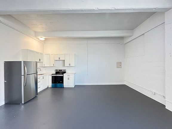 Unit features 2,000 square foot floor plan with two large bedrooms. Blank canvas with plenty of space for creating your new home. Kitchen features brand new stove, refrigerator, and cabinets.
