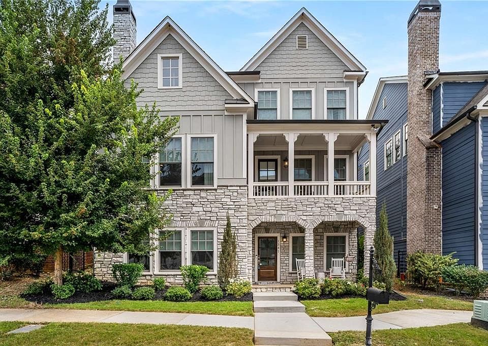 Gorgeous 3 level home in sought after West Town community in popular West Midtown area features beautiful finishes and open floor plan. This one owner home was built in 2016 and combines classic architectural style with modern floor plan and amenities. Enter the first level via a charming, welcoming porch. This level features a large living space, perfect for media room or playroom plus an ensuite bedroom and full bath and the 2 car garage. The main level features an open floor plan with a beautiful living room that has large windows allowing abundant natural light, hardwood floors, 9' ceilings, exposed brick fireplace and is open to the dining space which has paneled wainscot and opens into the kitchen. The kitchen has painted wood cabinets, large center furniture style island with seating for 4, moon white granite countertops, tiled backsplash, KitchenAid pro series 6 burner gas range and vent hood, KitchenAid double ovens, and a fabulous Butler's Bar with beverage fridge, wine rack and glass front cabinets. There is also a breakfast nook or lounge area at the rear of the kitchen. Just off the living area of the main level is a charming covered porch. Upstairs are the Primary suite, two additional bedrooms and laundry room. The Primary Bedroom is oversized and features a tray ceiling, large windows and seating area. The Primary Bath features marble look porcelain tiles, double vanity, walk-in shower with frameless glass and soaking tub. The large walk-in closet is beautifully outfitted with a custom closet organization system. The two additional bedrooms both feature hardwood floors and large windows along with private baths. One of the bedrooms is adorned with a feature wall of applied moldings for a classic paneled look. Outside is a patio for grilling and outdoor lounging and garden boxes to grow your own produce! Walk to Taqueria Del Sol, Ormsby's, Chattahoochee Coffee Company, Shake Shack, Marcel, West Egg, Barcelona Wine Bar, Souper Jenny, Twisted Soul, Agovera Cantina, ATLANTA BELTLINE, Retail and Entertainment and so much more! Just minutes to Midtown and Downtown in the Heart of Westside Design District.