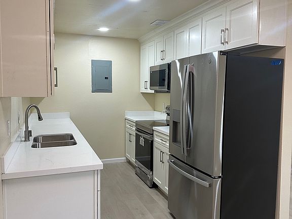 Convenient half bathFresh paintBrand-new flooringClean contemporary feelAmple cabinet spaceAll-new appliancesSleek new appliances