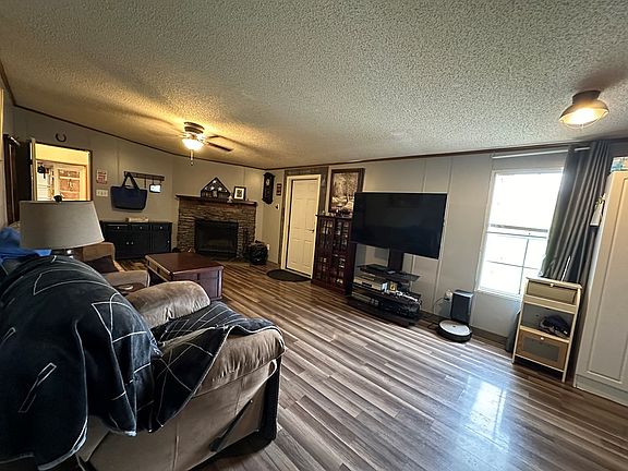 Check out this large doublewide sitting on 2.5 acres of land with a garage! This home has everything you need with 2 living rooms, 4 bedrooms, and 2 full bathrooms. The one car garage has tons of extra storage space. The kitchen lays between both living rooms making it easy to entertain. The open concept in this home makes it functional everyone. The land is perfect for animals and kids to play with the spacious yard. There is a partially fenced area which is ready for you to move in any animals. The home is ready for you to move in.