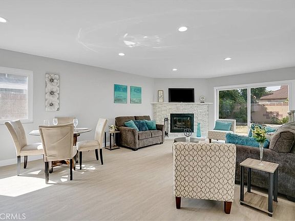 Conveniently located near the 405 freeway, tucked in a quiet cul-de-sac, you will find a tastefully renovated 4 bedroom 3 bathroom home with a gorgeous kitchen, designer bathrooms, a spacious open floor plan, interior laundry room and an attached 2 car garage. The primary bedroom gives privacy with its own beautifully updated tiled bathroom and double closet. The fully modernized kitchen features a stunning backsplash, new cabinets, quartz countertops, new farmhouse sink, new stainless dishwasher, refrigerator, stove and hood. The kitchen opens to the family room with an eye catching marble stone fireplace. In addition to the brand new tile, flooring, and recessed lights throughout the home, there is a new water heater, upgraded electrical panel, new air conditioning condenser, a brand new roof, and fresh paint inside and outside. Other recent upgrades include double pane windows and copper plumbing. There is so much to love about this property. Come see this elegant home soon and make it your own.