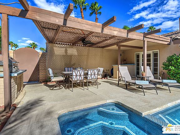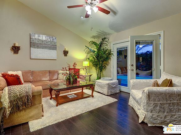 Welcome to Padua Paradise! You're going to love this warm and cozy two-bedroom,two-bathroom vacation home in Palm Springs. With a very private back yard, sparkling swimming pool and spa, and a lovely view west to the mountains, it feels like your own private little resort. The large covered poolside patio has the best view, across the pool to the grass yard and mountains beyond. This dining table seats six, and the adjacent barbecue station and separate bar will help facilitate outdoor entertaining even on the warmest days. There also a large covered patio on the other side of the house, accessed directly from both bedrooms the perfect place to get away from the group and catch up on your reading. The living room offers plenty of comfortable seating, with two sofas and a club chair with ottoman. One of the sofas is a sleeper for added flexibility in accommodations. There is also an HDTV and a fireplace for chilly evenings. And French doors open from the living room to the pool deck so you can enjoy the indoor/outdoor lifestyle Palm Springs is so famous for. Down the hall are two bedrooms. The master bedroom features a king size bed, HDTV, private bathroom with step in shower, and glass doors to the south covered patio. The guest bedroom has a queen size bed, HDTV, glass doors to the patio and is conveniently located adjacent to the guest bathroom in the hallway. Other highlights include a one-car garage available for guest use and the entrance patio is gated outside the front door. Comfortable, private and inviting, your Padua Paradise awaits! NO PETS WITHOUT APPROVAL - or required by law.