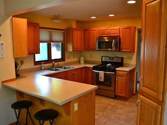 1/11/2014 A well maintained 4 bedroom, 2 bath, 2 car garage home on a cul-de-sac, backing on to your own nature show. The kitchen is bright and sunny, loads of counter space, and cupboards, lots of cabinets and pull out pantry shelves; there is a breakfast bar/counter adjacent to the dining area, which has windows on two sides, bringing outside in. You will love the storage in the kitchen. The vaulted ceilings in the main floor living room and lots of windows bring in the sun and feeling of space. From the living room you can walk out onto a large deck where you can watch the wildlife and birds, sit in the sun and just relax! Three bedrooms on the upper level, all looking out onto an undeveloped nature area. The main bathroom has a Whirlpool tub, heated tile floors and a separate shower, just the place to unwind. On the lower level is a cozy family room with a gas fireplace and doors out to the screened three season porch. Peace, quiet, cool and shady where you can see the hostas and perennials planted just outside the porch. The fourth bedroom and 3/4 bathroom are on this level, along with the laundry room and utilities. There is a crawl space which is accessible from the family room or outside for even more storage. The two car garage is heated and insulated and the driveway is concrete. The attic has R60 blown insulation. There are rain gutters with gutter helmets around the roof. The front yard is landscaped and has perennials and lawn with some shrubs, from the spring onwards it looks wonderful. Outside at the back is a workshop with power and a shed to store all your garden tools and furniture. This home is inviting and ready for you to move in. Unpack, put a pot of coffee on and you are Home!