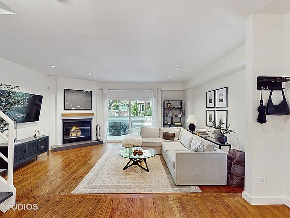 Amazing Wicker Park Townhome: Urban Oasis with No HOA! Discover this exceptional 3-bedroom, 3-bathroom townhome in the heart of Wicker Park, offering the spaciousness and privacy of a single-family home without the burden of an HOA. Perfectly situated, you're just steps from the Blue Line, the scenic 606 Trail, and the vibrant shops and restaurants along Division and Damen. This custom-designed, three-level residence boasts a seamless blend of modern character and clean lines. The main level features an open-concept living and dining area, highlighted by a wood-burning fireplace and beautiful hardwood floors. The gourmet kitchen is a chef's dream, equipped with stainless steel Bosch appliances, crisp white cabinetry, and elegant quartz and marble finishes. Step outside from the living room to a charming garden patio, perfect for al fresco dining. The lower level provides additional living space with a comfortable family room, a full bathroom, laundry facilities, a dry bar, a wine cooler, and ample storage. On the upper level, the serene primary suite offers a private escape with a luxurious en-suite bathroom featuring custom Carrera marble finishes, a private commode, double sinks, and a refreshing rain shower. Two additional bedrooms, currently utilized as a guest suite and home office, share a well-appointed full hall bathroom. Enjoy breathtaking city views and unparalleled entertaining opportunities from your expansive private roof deck, complete with durable Trex flooring and integrated planters. The home is bathed in natural light, capped by a brilliant skylight, and offers excellent closet and storage space throughout. A deep one-car garage provides extra storage. This is truly a perfect urban sanctuary!