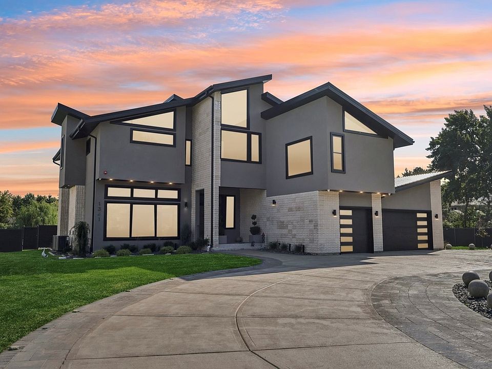 Where luxury, elegance, comfort, and functionality meet. This European-inspired residence offers 6 bedrooms, 6 baths, and a 3-car garage on a 1-acre lot with room for a pool. Soaring ceilings (9-36+ ft), white oak flooring, triple-pane windows, spray foam insulation, and a 50-year metal roof highlight the quality construction. The gourmet kitchen features Thermador appliances, double oven, and an oversized 10' x 5' island. The open, sunlit layout includes built-in speakers, a main level 5th bedroom and spacious finished basement with 6th bedroom. The primary retreat offers a private balcony, two walk-in closets, and a marble spa bath with radiant heated floors, double vanities, oversized shower, and soaking tub. Since purchase, the home has been further elevated with approximately $450K+ in upgrades (2023-2025), including resort-style landscaping, elevated glass-surround deck, motorized blinds, sprinkler system, custom Italian closets, modern glass railings, concrete shed, and more. A rare opportunity blending European design, modern efficiency, and luxury upgrades for the ultimate suburban lifestyle.