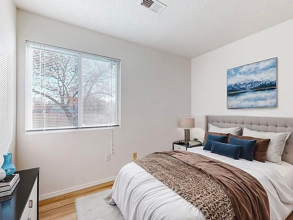 Welcome to this charming 3-bedroom, 2-bathroom home nestled in the desirable North Hills neighborhood of Rio Rancho! With 1,052 sq ft of thoughtfully designed living space, this home features vinyl plank flooring throughout, raised ceilings, and an abundance of natural light through thermal double-pane windows. The eat-in kitchen flows into a cozy great room featuring a gas log fireplace, perfect for gatherings with family or friends. The primary suite is separated from the other bedrooms for added privacy. Modern comforts include refrigerated air, a two-car garage with openers, and appliances--refrigerator, washer, and dryer--that convey with the property. Enjoy easy-maintenance southwest landscaping and peace of mind with numerous updates: roof and ...See More