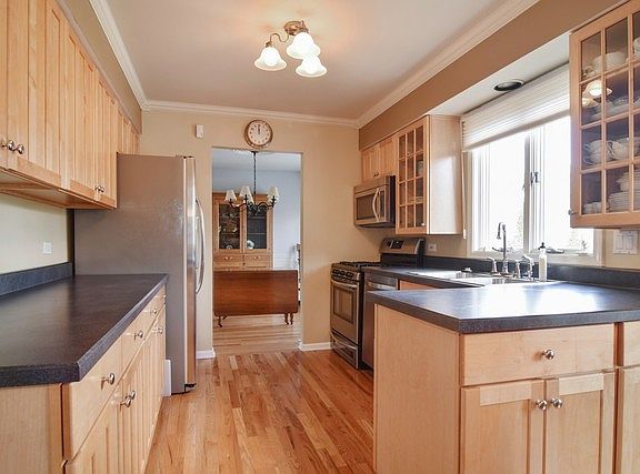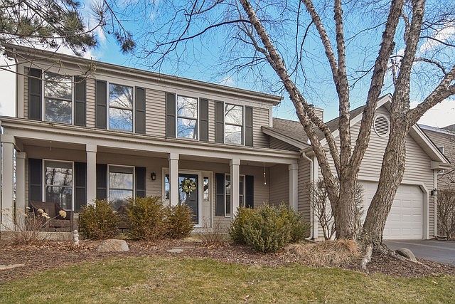 Prepare to fall in love with this two-story beauty! Featuring 4 bedrooms, 2.5 baths, & gleaming hardwood floors through-out 1st & 2nd floors. Relax in your spacious family room that boasts a floor-to-ceiling brick fireplace with gas logs & starter. Kitchen includes stainless appliances and separate eating area. Private dining room includes a picturesque bay window. Large master suite features his & her closets,updated bath with over-sized whirlpool tub, separate shower, granite vanity with dual sinks, & skylight. Generously-sized bedrooms & plenty of closet space. Basement includes a recreation room and utility room with washer, dryer, sink, work bench, & large crawl space for so much storage. Main level patio door opens up to a stamped concrete patio in a lovely fenced yard, great for entertaining & outdoor activities. Professionally landscaped back and front yard. 2007 new roof & HVAC. 2-car garage. Highly-rated elementary school! 12 minute car ride to commuter train station.