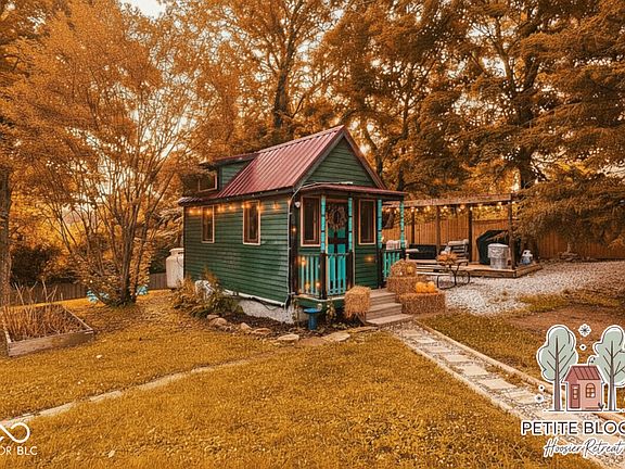 Discover a truly unique property that acts as a getaway tucked in the peaceful outskirts of Bloomington, just minutes from vibrant downtown attractions and the artsy town of Nashville. Situated on a peaceful .28-acre lot, this established short-term rental is ready to impress both guests and investors! The main tiny home features a cozy lofted queen bed, a full bathroom, and a bright kitchenette with cherry cabinets, a refrigerator, microwave, and two-burner gas cooktop. High-end touches like a ceiling fan with a glass fixture and thoughtful use of space make this tiny home as beautiful as it is efficient. Step outside to your covered porch, relax in the hot tub, or unwind in the fenced yard - perfect for pets, gardening, or simply enjoying the outdoors. A detached studio shed provides extra versatility with electricity, a pull-out twin bed, TV, and workspace-ideal for guests, creative projects, or remote work. Additional perks include a storage shed and RV electric hookup, offering even more flexibility for visitors or additional rental potential. Whether you're searching for a turnkey short-term rental, a cozy personal retreat, or a distinctive property with room to grow, this property delivers it all. Don't miss this one-of-a-kind opportunity to own a piece of Bloomington charm!