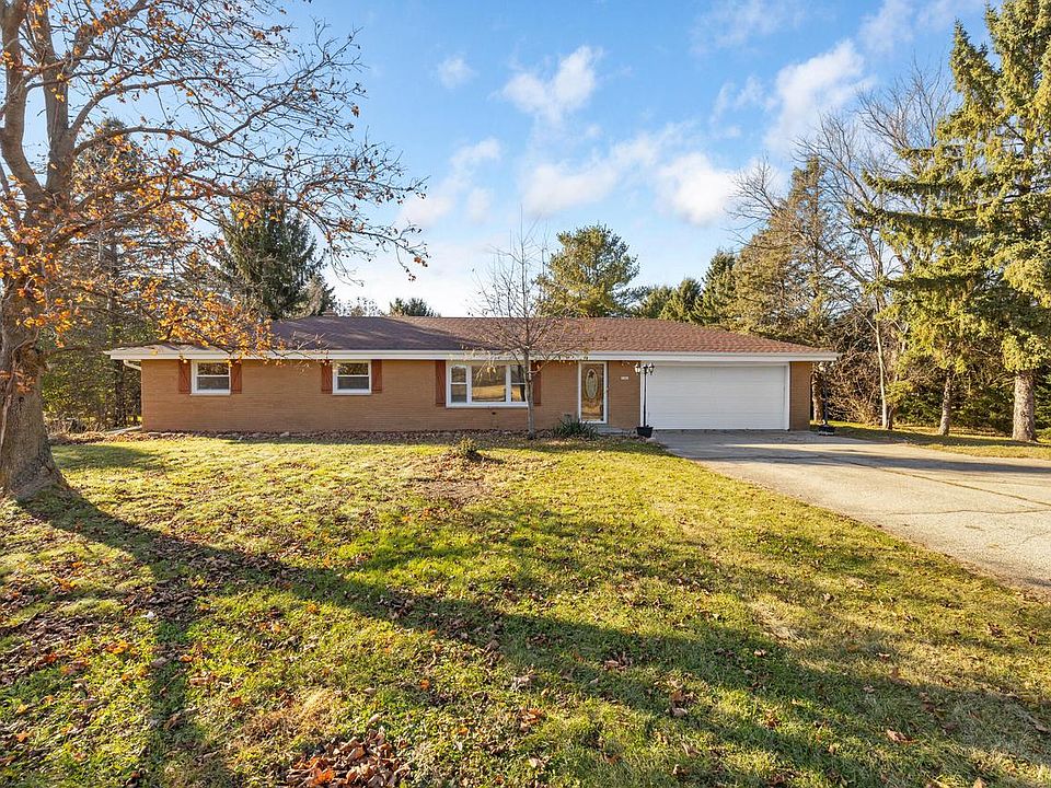 This stunning updated ranch sits on nearly 1 private acre and offers 3 bedrooms, 1.5 baths, a spacious dining room, and a 2-car attached garage. Step inside to new windows, fresh paint, and LVP flooring throughout. The kitchen shines with new cabinets, quartz countertops, a beautiful backsplash, and brand-new stainless steel appliances. Both bathrooms have been tastefully updated. The basement is ready for you to finish for even more living space. Outside features a large additional shed--perfect for storage or hobbies. Move-in ready and truly a rare find!
