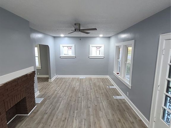 Welcome home to this beautifully updated in 2025 two-story offering 3 bedrooms and 2 baths, perfectly blending modern touches with timeless character. Step inside to find fresh neutral paint, new flooring throughout the main level, and an abundance of natural light creating a warm, inviting atmosphere. The spacious living room flows into a dining area and a bright, fully refreshed kitchen featuring crisp white cabinetry, sleek countertops, and an arched doorway leading to a cozy breakfast nook — the perfect spot for morning coffee or casual meals. A main-level bedroom provides flexible use for a guest room, home office, or convenience-focused living. Upstairs, you’ll find two additional bedrooms, one with a beautifully renovated full bath complete with a tiled walk-in shower and modern vanity. The brick fireplace adds a cozy focal point, while updated fixtures and finishes throughout offer a move-in-ready experience. Enjoy the comfort of a home that has been thoughtfully refreshed from top to bottom — perfect for a first-time buyer or anyone looking for stylish, low-maintenance living.