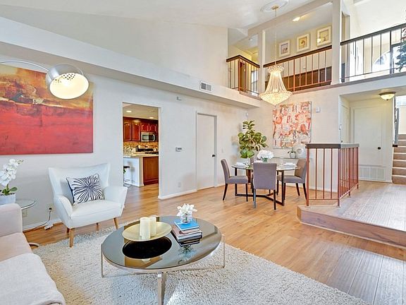 Beautifully appointed, two-level townhome in an intimate setting. Contemporary and refined with upgrades throughout, this townhome basks in sunlight. As you enter, step down into your formal dining room and living room with soaring cathedral ceilings and cozy fireplace perfect for the holidays. Kitchen has quartz countertops, elegant cabinetry with space-saving solutions, and a large breakfast counter. Family room invites you to your own serene oasis of a back yard. Admire your living room from the second level hallway. Large master bedroom with walk-in closet, a reading nook and balcony. Master bath has contemporary flooring, sink, a standing shower. Second and third bedrooms are also large, with sliding glass mirror doors. Updated hallway bathroom. Distressed engineered wood and tile on the first level, and plush carpet on second story. Neutral and inviting paint color. Base boards throughout the home. Spacious garage with ample driveway to park two additional cars. Washer/dryer hook ups. Community has a large greenbelt, pool, spa and club house. Urban lifestyle with a small town feeling, the home is only minutes to EXCELLENT SAN DIMAS schools, freeways, places of worship, and shops. Come home to our your own haven.