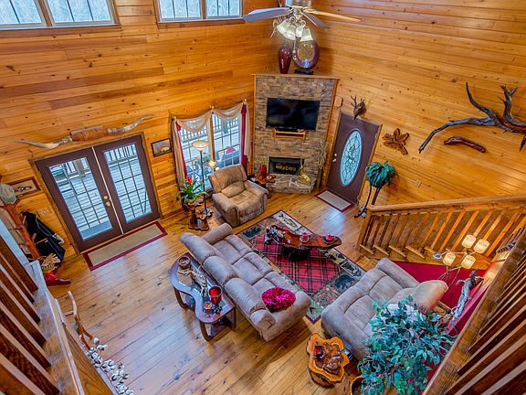 Amazing Riverfront Retreat! Located in the Coosawattee River Resort, this beautiful 4BR/3BA home has all the amenities you coud dream of PLUS your own Coosawattee River frontage in your back yard! Paved roads all the way to the cabin! Over 900 sq ft of covered porches! Two story greatroom is the perfect place for family gatherings with plenty of room for seating and dining! Large twin master suites located on main floor and second story! 2 additional bedrooms in terrace level guest suite!