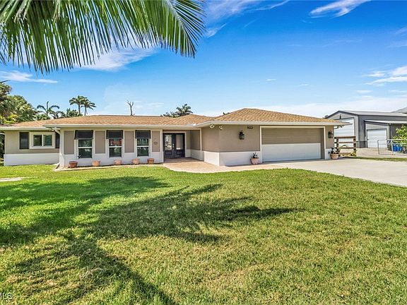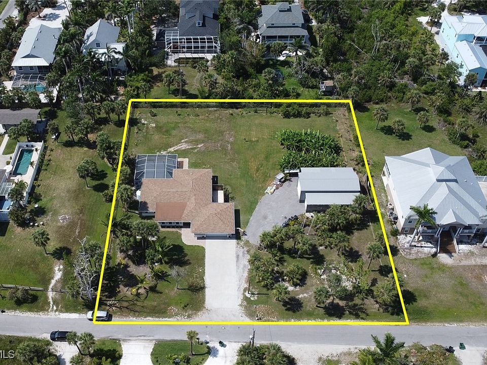 Recently back on the market after the buyers changed their minds on relocating to SWFL, their loss is your gain! RARE FIND, almost to Sanibel! Just minutes from our famous white sandy beaches, from Bunche Beach to Ft Myers Beach and Sanibel! This fully remodeled, move-in-ready home with a brand-new kitchen is truly one-of-a-kind. Situated on almost 1 ACRE of land, the site is 2 lots and plenty of tropical fruit trees, this unique property offers endless possibilities—especially if you own your own business or dream of extra space for hobbies, storing your boat or RV, or a workshop. The recently built 23-foot high, 1,600 square foot all-metal barn with 4 pull-down doors adds incredible value and flexibility for this property! Featuring 3 BR and 2 baths plus an office. Over 2,000 square feet of beautifully updated living space, this property combines modern comfort with room to grow in a peaceful neighborhood. Close to the sparkling waters of Punta Rassa and nearby marinas to launch your boat. Opportunities like this don’t come around often—schedule your showing today before it’s gone!