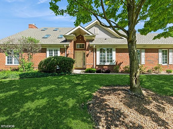 Your ranch end-unit townhome in Palos Heights offering low maintenance living is waiting! With 2500 square feet above grade there is plenty of space for entertaining and convenient living. Newer skylights and vaulted ceilings offer a bright and airy atmosphere. This former model features quartzite countertops, creamy white cabinets and updated double oven and refrigerator. You will love the convenience of the minibar in the large living room which also offers a gas fireplace. Tray ceilings elevate the dining room just off of the foyer. The primary en-suite offers a generous jetted tub, separate shower, double sinks and vanity, and two closets. Two additional bedrooms, full bathroom and laundry room on the main level adds convenience and comfort. The unfinished basement offers tons of space for storage or finish to your desires! Sit out back on the deck and enjoy the well maintained, professionally landscaped grounds. For peace of mind, the roof was recently replaced. Don't miss out the ranch you've been waiting for!