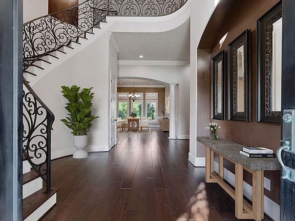 Sophisticated & timeless, this custom estate in the gated community of Kluge Lake sits on a coveted corner lot over half an acre. With 5,400+ sq ft, this 5-bedroom, 5 full & 2 half bath home offers refined living throughout. A dramatic 2-story entry opens to formal & casual spaces w/hand-scraped wood flooring, crown molding, plantation shutters & abundant natural light. The kitchen impresses with Thermador appliances, a large island, butler’s pantry & seamless flow family room with gas fireplace & walls of windows. The first floor also includes a private study, formal dining, media room, wine room with wrought iron door & guest suite with ensuite bath. The primary retreat offers spa-like comfort with patio access. Upstairs features a spacious game room & 3 additional bedrooms, each w/private baths. Resort-style backyard with covered patio, full outdoor kitchen, pool, spa, fire pit & lush landscaping for privacy. Low tax rate, 3-car garage & located across from the lake & scenic trails.