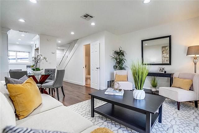 This turnkey townhome is THE perfect starter home or easy investment property in the most desirable part of Cerritos. Two story, two bedroom home has a recently remodeled kitchen with quartz countertops, soft-closing Shaker cabinets and newer appliances. Other upgrades include wood-like floors throughout, recessed lighting, dual-pane vinyl windows and sliding door. Two car parking, laundry, and extra storage are close by. Carmenita Village has a community pool and is centrally located, offering easy access to freeways, shopping, restaurants and one of the best school districts in California - ABC Unified. Don't miss out on this gem - must see!