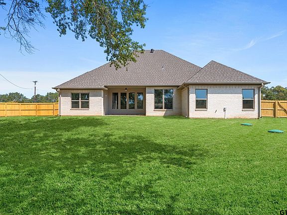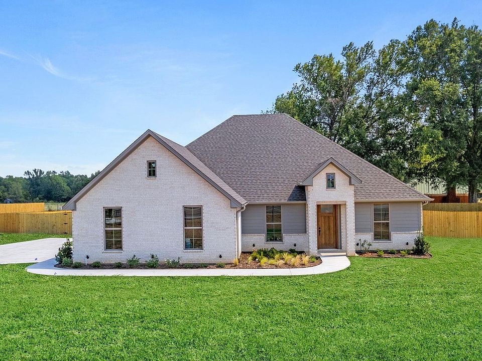 This stunning home in Flint, TX is brand new and located in the Bullard school district! This one has it all, an open design with beautiful vinyl plank flooring, spacious family room with gas fireplace, cabinets, and open shelving. The light and bright kitchen features granite countertops, an abundance of white cabinetry, stainless appliances, a large island with bar seating, and a walk-in pantry. The breakfast room overlooks the backyard. The primary suite features granite countertops, double sinks, a pretty freestanding tub, and a wonderful choice of tile in the separate shower. A Large walk-in closet with chest of drawers that is mere steps to the utility room for added convenience! There's a separate office with solid French doors that can double as an optional 4th bedroom. All additional bedrooms are spacious with walk-in closets. They enjoy a well-appointed hall bath. Entertaining guests on the covered porch overlooking the open spaces is not only relaxing, it is perfect! Do not miss out on making this your new home!