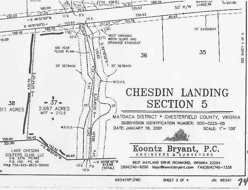 Amazing price for golf course lot! Public water available at the street, soil report available for a conventional septic system. Partially cleared for septic location or homesite. Bubbling creek and beautiful hardwoods make this rare golf course lot extra special! Located near the Chesdin Landing Club house, pool and tennis courts. Soil reports available, just ask.