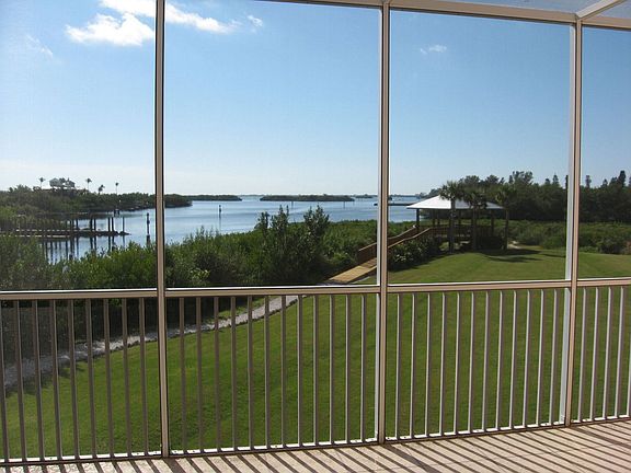 Waterfront 2 bedroom 2 bath PLUS den, offered furnished in Boca Vista Harbor! This condo has panoramic water views, an eat in kitchen, open dining and living space plus a den/office. The master bedroom has sunset views, and the master bath has dual sinks and walk in closet. The guest bedroom and second bath have a sliding door to create a private en-suite for guests. A waterfront screened lanai comes equipped with an electric shutter. A new a/c and refrigerator have been installed. A covered private garage is located under the building for easy access. The community offers a kayak & paddle board launch area, boat docks at an additional fee, most with lifts, and is located adjacent to Gasparilla Marina with fuel, service and supplies. The 7 mile Pioneer Trail is conveniently located across the street for walkers, runners and bikers! Boca Vista amenities include a gated entrance, heated pool and spa, and tennis court. Located 5 minutes from Boca Grande and its beautiful beaches, restaurants and shopping!