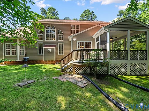 Welcome to 13413 Prince James Dr. a private retreat nestled in the sought after Summerford neighborhood of Chesterfield! This exceptional home sits on a beautifully landscaped lot w/ wooded buffers in both the front & rear, offering unmatched privacy. Enjoy neighborhood sidewalks right at your doorstep, mature landscaping, a side-load oversized two-car garage w/ workshop space & freshly mulched beds alongside the concrete aggregate walkway leading to a covered front porch. Inside, you're greeted by handsome hardwood floors & a stylish foyer w/ a decorative light fixture & transom windows. French doors open to a light-filled home office w/ crown molding, & the formal dining room impresses w/ picture molding, chair rail, crown molding & a tray ceiling. The heart of the home is the soaring two-story family room, complete w/ a gas fireplace, plantation shutters, surround sound speakers & a smart closet ready for your media system. The eat-in kitchen offers granite countertops, an island, wood cabinetry, a generous pantry & french doors leading to a screened-in porch w/ Trex decking & lighted ceiling fan. Just off the kitchen, you'll find a mudroom area w/ wainscoting, a half bath, a dedicated laundry room w/ built-ins, a sink & access to the garage. The first-floor primary suite is a true retreat w/ walk-in closet & an en-suite bath showcasing a walk-in shower, separate jetted tub, dual granite top vanity & soft-close cabinetry. Upstairs, the open loft provides the perfect space for a media room, playroom, or cozy reading nook. You'll also find a 2nd primary suite w/ a walk-in closet & full en-suite bath. The 3rd & 4th bedrooms are very spacious & have lighted ceiling fans & walk in closets. Finishing off the upstairs is a double door linen closet & a well-appointed hall bath w/ a dual vanity & direct access to the 3rd bedroom. Features/Updates include; NEW Roof - 2023, NEW Dual Zone HVAC - 2023 & 2021, Newer Water Heater - 2018, Low maintenance vinyl siding, Energy efficient Vinyl windows & 3 sided irrigation!