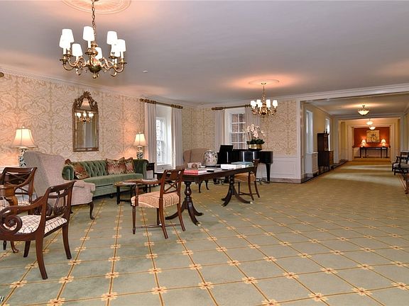 Tastefully updated in neutral colors with custom window treatments and wallpaper and beautiful