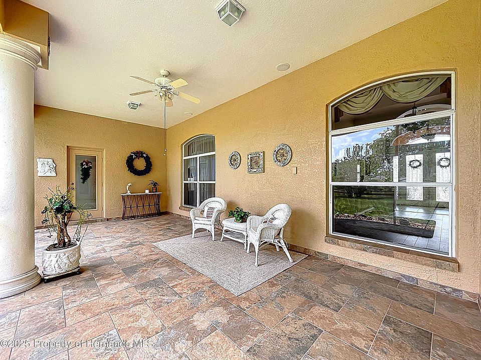 Classic pillarsNew granite countertopsCustom windowsArched doorwaysOpen and inviting kitchenVintage inspired light fixturesTiled screened in lanai