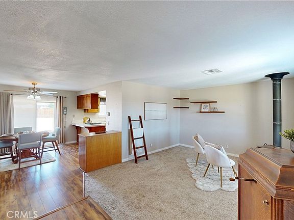Must see home is a beauty! located in a quiet neighborhood of Victorville, this 1,618sqft property has 3 bedrooms, 2 baths, large lot with plenty of parking for all your toys, on one of the 2 large driveways. Large backyard has covered patio, large storage shed and wooden fencing around the perimeter. Family room has a cozy touch with a wood burning stove that you can share the ambience with in the sizable dining area with barstool seating on both side of the kitchen. Kitchen opens up to the grand living room with a beautiful brick fire place and ample space for all family gatherings. Attached 2 car garage has utility hook-up for washer and dryer. Additions to the property are newer roof and carpet, luxury vinyl plank floors, new A/C unit, all dual pane windows and Vivint security system.
