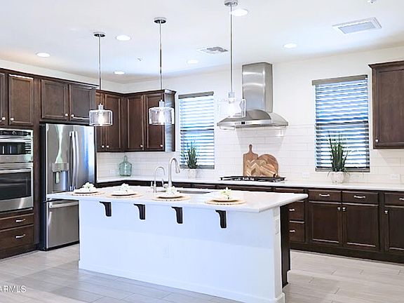 Discover resort-style living in Trilogy at Vistancia with this upgraded 2021 Lumina model. Offering 2 bedrooms, 2.5 baths, and a versatile den/bedroom with French doors, Murphy bed, and built-ins, this home blends style and function. The chef's kitchen features quartz counters, GE stainless appliances, a walk-in pantry, upgraded cabinets with pull-outs, and stylish pendant lighting. Wood-look plank tile, surround sound, water softener, RO system, and custom drapes add to the appeal. The primary suite is flooded with light and attached bathroom boasts a gorgeous floor to ceiling, tiled walk-in shower, dual vanities, private toilet room and spacious walk-in closet. Guests will enjoy their own private suite, complete with tiled walk-in shower, private toilet room and spacious closet. A paver driveway welcomes you home and a large extended, paver patio, with covered dining area, creates a private retreat to enjoy in the back. The thoughtfully designed backyard leaves plenty of room for a pool or spa, outdoor kitchen, or whatever your heart desires. Enjoy golfing on the 18-hole, par-72 championship golf course at the Trilogy Golf Club, spend the day at the Alvea Spa or enjoy the many amenities offered at the Mita and Kiva Clubs. Welcome to your ideal desert sanctuary - the perfect place for your Arizona dream home!