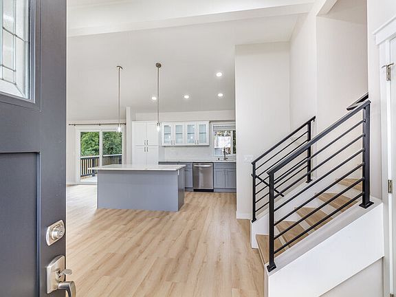 Electric fireplaceSleek quartz countertopsBrand-new kitchenFully finished lower levelGleaming new floorsEating islandFamily room