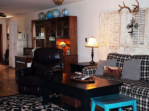COUNTRY LIVING WITH MOVE IN READY HOME WITH ATTACHED 2 CAR GARAGE AND EXTERIOR BUILDINGS CLOSE TO TOWN. You will enjoy the peace and quiet of the beautiful 4.9 acres. This home has been remodeled & has many updates you must see to appreciate. You enter the home from enclosed sunroom. The large living room features hardwood floors, beautiful stone fireplace with Pellet insert (great for heating the house in the winter). The kitchen and dining room are very open great eating area with nice windows plus remodeled kitchen featuring abundance of cabinets with soft close doors, pull outs, pantry, tile back-splash and stainless steel appliances. Just what every home needs -large mud room with pantry and separate laundry room. The family room is directly off the kitchen with nice windows and leads to large patio 15x27 great for entertaining. The upstairs features 2 bedroom, one bedroom has nice built in cabinets great for additional storage. Exterior amenities include new roof, 30x50 Shop with electricity, farm lean-to 18x15, carport. Good well 44'depth new pump 2013. This home has a security camera which has 4 cameras of the property, 4 more could be added.