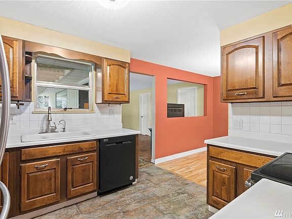 Looking for a large lot, covered outdoor space, with updates? Look no further. This home features a large laundry room, main floor fireplace, updated kitchen and much more. Use the large covered outdoor area to enjoy NW outdoor living year round. Hardwood flooring throughout the living areas and bedrooms. One bathroom has been updated recently close to one bedroom which could be used as a master suite.