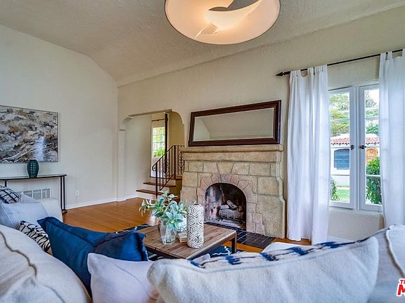 Located above Mountain in the quaint neighborhood of Rossmoyne is this beautifully preserved 1927 French Norman Revival home. Enter the house to soaring 12' vaulted ceilings, Claycraft fireplace and gleaming wood floors. Living room connects via split level to the dining area with French doors leading to the patio making great indoor/outdoor living and adding to the flow of the house. Bright and sunny kitchen with vintage stove, newer cabinets, breakfast area and treetop views. Three generous bedrooms with Southern exposure, Large bath with vintage tile floor, and character ~ bath attached to the master complete the main level.Down one flight of stairs is the flexible large 4th bedroom or Den with walk in closet and ~ bath. Backyard is surrounded by walls of green and mature trees.