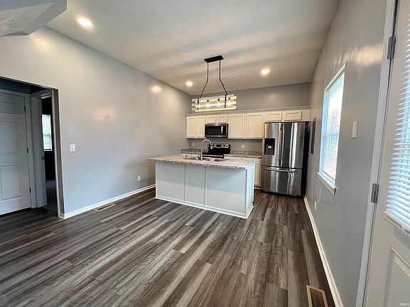 You will love this adorable and completely remodeled 2-3 bedroom home located on a nice corner lot in Evansville. Offering an updated kitchen, bathroom, light fixtures, fresh paint, and new floor coverings throughout this home is ready for new owners. The living room and both bedrooms feature high ceilings and new ceiling fans, and the bathroom boasts a new double vanity and a linen closet added for additional storage. The homes new and modernized kitchen includes all new cabinets, an island, stainless steel appliances, and is finished off with new countertops. The laundry room, which was previously in the bathroom, now has its own private space and can also be used for additional pantry storage. Additional features include a finished second floor attic which offers two spaces that could easily be used to expand the living space with an additional bedroom and bonus room, an unfinished but insulated basement, and numerous updates to the homes plumbing and electrical services. So, if you are looking for a move in ready home under $130,000 then look no further because this is a hot one and is sure to move quickly!