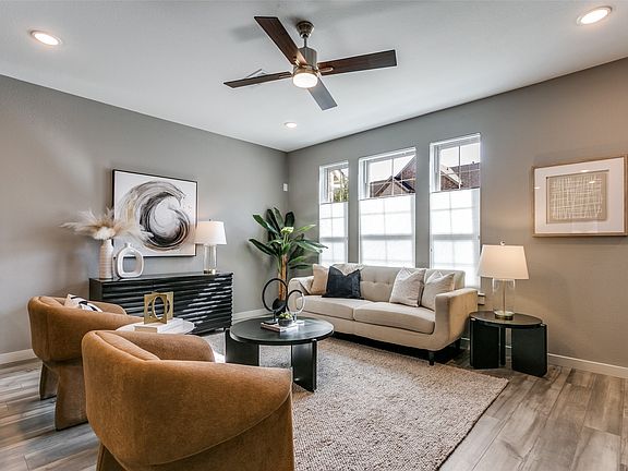 Stunning 3-bedroom townhome with a modern feel, ideally located on a quiet street toward the back of the Villas of Southgate. Backs up to a beautiful, treed green space—tranquil and private, with no buildings behind the unit. Light and bright with a contemporary kitchen, open floor plan, and stylish finishes throughout. Features a spacious primary suite with a spa-like bath, plus two additional bedrooms and 2.5 baths. Immaculate condition with custom built-ins and epoxy flooring in the garage. Kitchen refrigerator, washer, and dryer convey. HOA maintains the structure and grounds, making this a true lock-and-leave property. Enjoy community amenities including a pool, playground, and walking trails. Prime DFW location just minutes from DFW Airport with easy access to major highways—a must-see property!