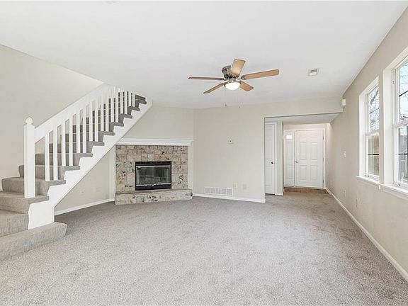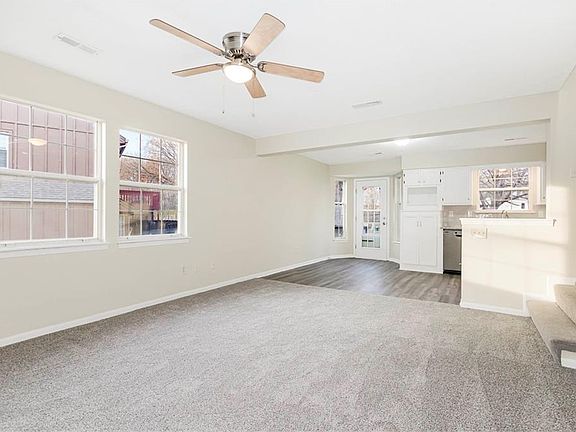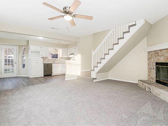 Welcome to this 2-bedroom, 1-bathroom townhome! This inviting space features durable LVP flooring throughout, with plush carpeting in the bedrooms for added comfort, and fresh interior paint throughout. Walk into an open concept, the living room features an electric stone fireplace and is open to the kitchen. The stylish kitchen boasts elegant granite countertops, perfect for both meal preparation and entertaining. The kitchen leads to the back deck that overlooks a treed, open backyard. The soaring ceilings in the bedrooms make them feel even bigger! Make this townhome your cozy haven for comfortable and stylish living!