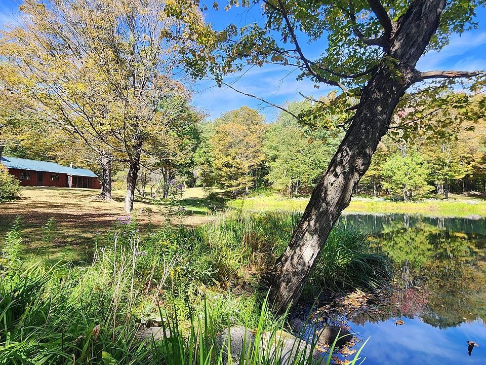 Welcome to your own private retreat—98 acres of serene Vermont beauty featuring meadows, woods, two ponds, and eight versatile outbuildings. Thoughtfully maintained and tastefully appointed, this charming home is nestled in a park-like setting complete with long, historic rock walls, mature trees, and flourishing perennial gardens. Nature lovers will revel in the abundance of wildlife, from hummingbirds and ducks to deer and the occasional moose wandering past the apple trees and blueberry bushes. Step onto the screened porch overlooking the main pond, perfect for morning coffee or evening relaxation. Inside, warm wood floors and exposed beams enhance the home’s country elegance. The open-concept living and dining area can be warmed by a cozy fireplace and flows into a light-filled kitchen with floor-to-ceiling windows framing views of a mountain you own. The home features two well-sized bedrooms and two full baths, offering comfort and practicality. Additional amenities include a large pantry/laundry room and easy access to a full concrete basement, ideal for storage or workshop space. Beyond the home, wooded trails lead to the back acreage and a hidden, crystal-clear pond perfect for secluded swims. There's ripe subdivision potential, with 14+ acres already surveyed across the Grafton line—an investment opportunity or space to expand your vision. Perfectly situated between the charming villages of Chester and Grafton, this is more than a home, it's a lifestyle.