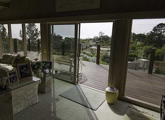 If you want privacy, serenity, and ocean view, this is it! Living room, dining room, kitchen, and family room open to La Canada Canyon and beautiful views of the Pacific Ocean. Huge trex deck invites alfresco living and sunsets year round! Lot goes way into canyon and is ~2.5 feet wider on left side neighbor. See supplement. Upgrades over the past 6 years include all new vinyl windows and doors, new furnace/A/C, new driveway, sprinklers, paint inside and out, metal roof, Bosch dishwasher. Fireplaces in LR and FR, lots of mirrors, parquet flooring and carpeting, and whitewashed vaulted wood ceiling in LR/DR. Owner will negotiate all furnishings separately.