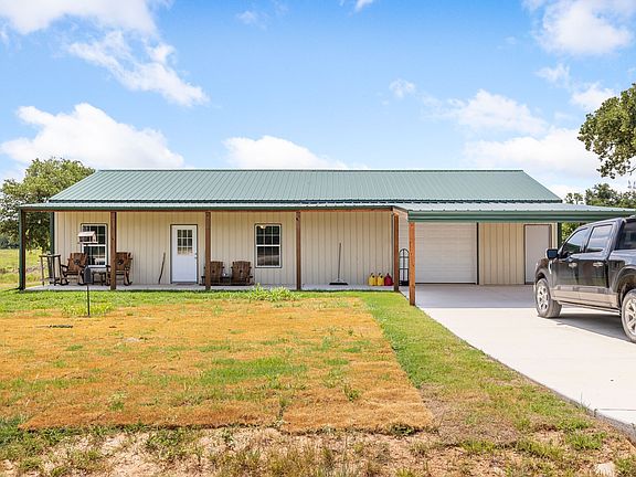 Incredible property with 3.5 acres with a barndominium. The barndominium is approx 1800 sqft. 900 sq ft of living area and 900 sq ft of garage-storage per the owner. It has 2 bedrooms and one bath. Stainless steel appliances in the kitchen. One car garage and a covered carport. The majority of the property is located in a flood plain. refer to the FEMA flood maps. The buildings are not in the flood plain.