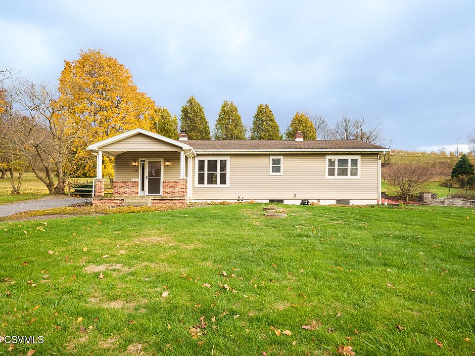 This adorable ranch home sites on a grassy .759AC lot with two peach trees, a mature chestnut tree, a black raspberry bush and a large area already fenced in for your pup! The home features a large living room with a cozy stone fireplace, a kitchen with new appliances, a dining room, full bath, an office and a large mud room. There are 2 conveniently located bedrooms, one on each side of the house offering extra privacy & they each have their own walk-in closet! New windows in 2025! The property also boasts a three-bay garage with a large second floor perfect for your workshop or business. The block shed houses a coal stove which when hooked up heats the house and one bay of the garage. If you're interested take a walk through the 3D tour and set up your showing before this one's gone!
