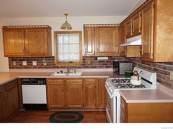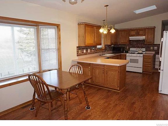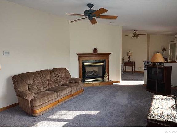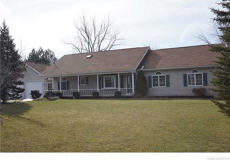 Maintenance free ranch with 3 bedrooms, 2 full baths and 4 car heated finished garage! Features: huge country kitchen, family room with gas fireplace, living room/dining room leads to 21X12 covered porch which overlooks private treed yard and pond. 1st floor laundry, six panel doors, shed, 38X6 covered porch, 21X7 breezeway, central air, professionally landscaped yard and huge double driveway.