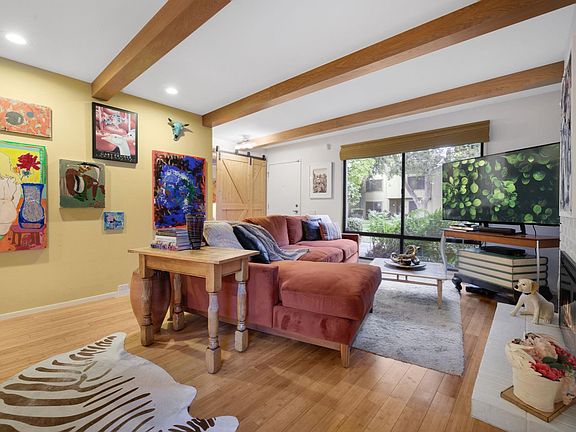 This is a MUST-SEE beautifully remodeled 2 bedroom 2 bath artist-loft with an excellent floor plan, in peaceful Campus Commons neighborhood. Single story on private corner lot, overlooking greenbelt, conveniently located near shopping, eateries, groceries, doctors, highway and more. Custom kitchen w granite counters, double s/steel sink, marble backsplash, newer wood and tile flooring, s/steel appliances including fabulous 3 door refrigerator. Both baths have travertine tile floor, and fresh paint throughout. 3 sets of double door closets in primary bdrm allow plenty of room for his & hers clothing storage. Murphy bed in guest bedroom and all appliances stay with reasonable offer. Spacious patio w/master bdrm access. 2 car garage. Access to pool, spa, workout room, common areas. Imagine little to no yardwork. All exterior maintenance managed by HOA, with exception of back patio. Don't let this exceptional opportunity pass you by!