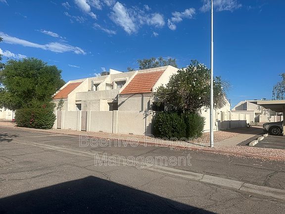 Great location! Two-story townhome located in Villas Mesa II community. Main level includes a private courtyard, master bedroom with full bathroom, kitchen, washer and dryer hookups. Second floors includes two bedrooms, balcony, and full bathroom. Close to shopping, dinning, Sloan Park. Community includes a pool and spa.