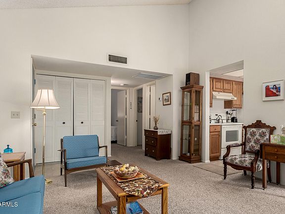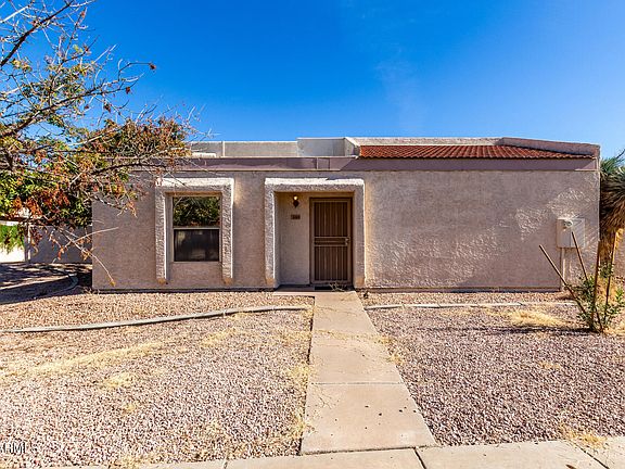 This well-maintained single-story end-unit townhome offers a thoughtful layout and a bright, welcoming feel from the moment you walk in. Vaulted ceilings elevate the main living area, creating an open atmosphere that connects seamlessly to the kitchen and dining space. The primary bedroom includes a private ensuite bathroom, while the secondary bedroom has convenient access to the full hall bath. Practical features such as in-unit laundry, two designated parking spaces, and a private outdoor storage room add meaningful value to the home. Ideally positioned within a well-kept Mesa community and minutes from shopping, dining, MCC, and major freeway access, this residence delivers a balanced blend of comfort, functionality, and location