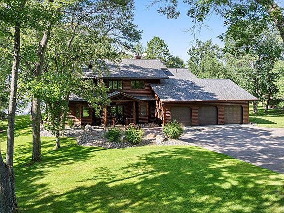 For the first time in 90 years, one of Cross Lake's crown jewels is finally up for grabs! This prime Whitefish Chain home on Cross Lake has been in the same family since 1933. The well-appointed log-sided house boasts 3,804 finished square feet, 5 bedrooms, 4 baths, spectacular elevation, the best sunset views, and is the prime place to watch the Fourth of July fireworks. It sits on a wooded 1.41-acre lot with 200 feet of excellent sand frontage, level elevation to the lake, northwesterly views, and is professionally landscaped. Inside, the lakeside great room features a vaulted wood ceiling, floor-to-ceiling stone fireplace with wood storage, hardwood floors, and stunning lake views. The kitchen includes high-end stainless-steel appliances and custom cabinets. The lakeside primary suite has a high-end bathroom with a walk-in shower and soaking tub. Upstairs, a loft overlooks the great room, and 4 bedrooms provide ample sleeping space for family and friends. There is an oversized main-floor laundry for ease. The attached 3-stall garage provides adequate room for parking and storage. Multiple patios and decks are perfect for dining with friends or relaxing after a long day. The lakeside paver fire pit is ideal for making memories under the stars. Enjoy the beach bar or relax on the sandy shore. Jump in the boat and explore the Whitefish Chain for boating, fishing, swimming, dining, and more! Ownership includes Sandcrest Association membership with 470 feet of shared lake access and amenities: west-facing swimming beach with gradual sand entry, tennis court, and walking trails. You will be minutes from all the Crosslake amenities: restaurants, shops, and scenic golf courses. Wake up to loon calls and end your evenings under star-filled skies. Book your private shoreline tour today and begin making Whitefish memories this summer. Don't miss the chance to make lasting family memories right here on Cross Lake.