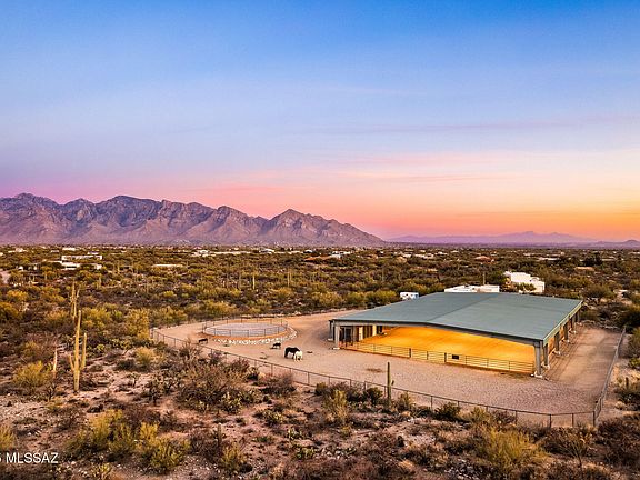 Nestled in the ultra-private, highly sought-after La Cholla Airpark community, this stunning 7.38-acre property offers some of the best horse facilities, views, and privacy you will find. This timeless southwest-style property includes a 3,551 sq ft main home with 4 bedrooms and 3.5 bathrooms, plus a 1,500 sq ft detached guest house, as well as elite horse facilities crafted for the most discerning equestrian. Breathtaking views of the Catalina and Tortolita mountains frame this pristine retreat, complete with access to a private 4,500' runway--perfect for your plane or small jet. The well-appointed main house boasts a first-floor primary suite, solid wood cabinets and doors, Saltillo tile flooring, tiled countertops, and a striking wood ceiling with exposed beams. Enjoy an upstairs sitting area, large laundry room, covered patio with brick pavers, custom pool and spa, and a fenced area with artificial turf. Mature desert landscaping and custom fencing enhance the property's charm.