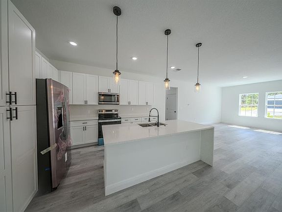 *Ready to MOVE-IN* This stunning home, located on a spacious lot has 4 bedrooms and 2 bathrooms, large living room with open concept kitchen, equipped with stainless steel appliances including a range, refrigerator, garbage disposal, dishwasher, and microwave, as well as an island and ample cabinet space, perfect for hosting large family gatherings. Rooms are spacious and comfortable, which allows for seamless flow and natural light throughout the home. The house has several upgrades, such as vinyl flooring, floor to ceilings tiles on bathrooms and lanai with space for outdoor kitchen. With a two-car garage, in addition to being more spacious, has a greater height than standard. It is a perfect place to live or invest. Closing Costs incentive.